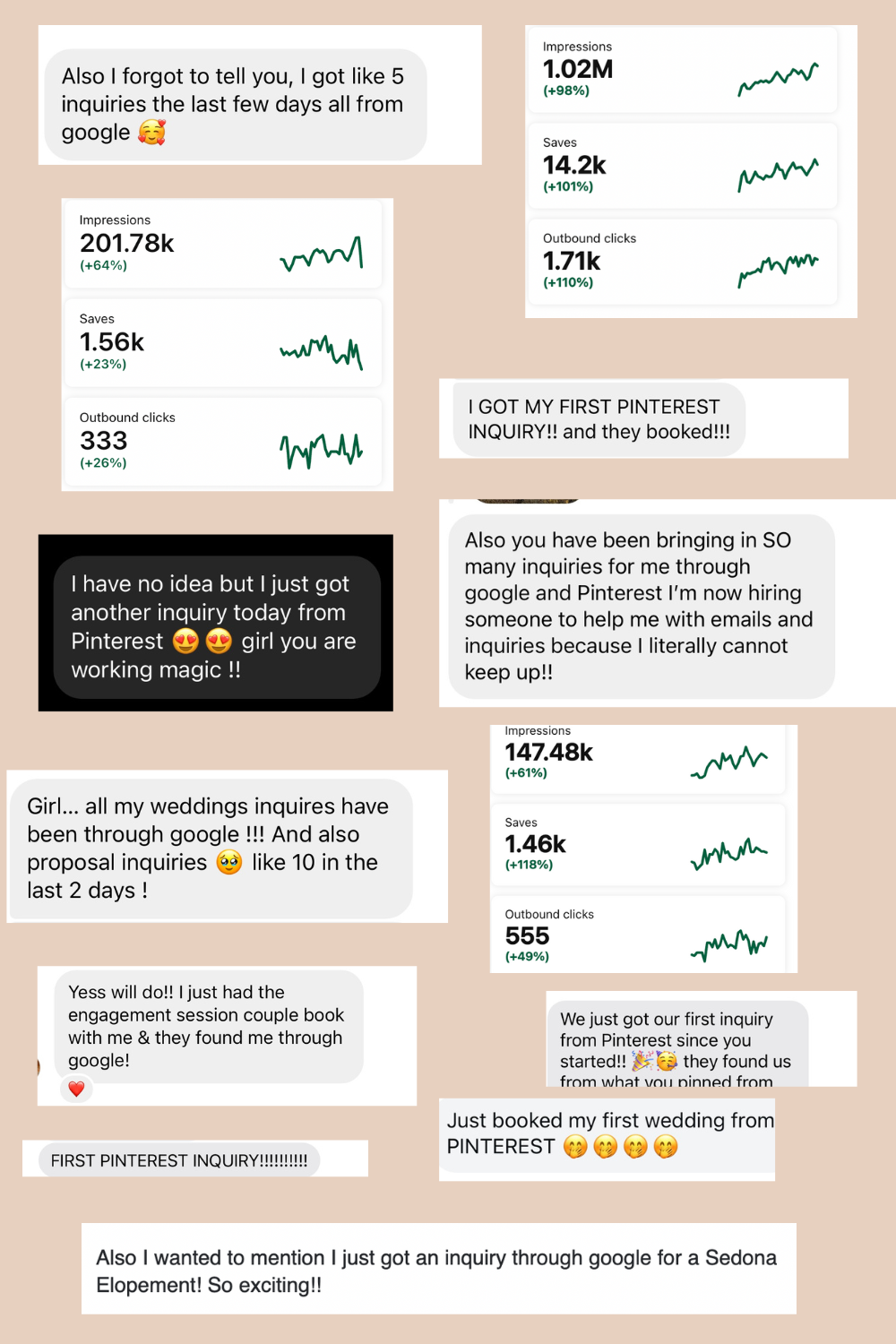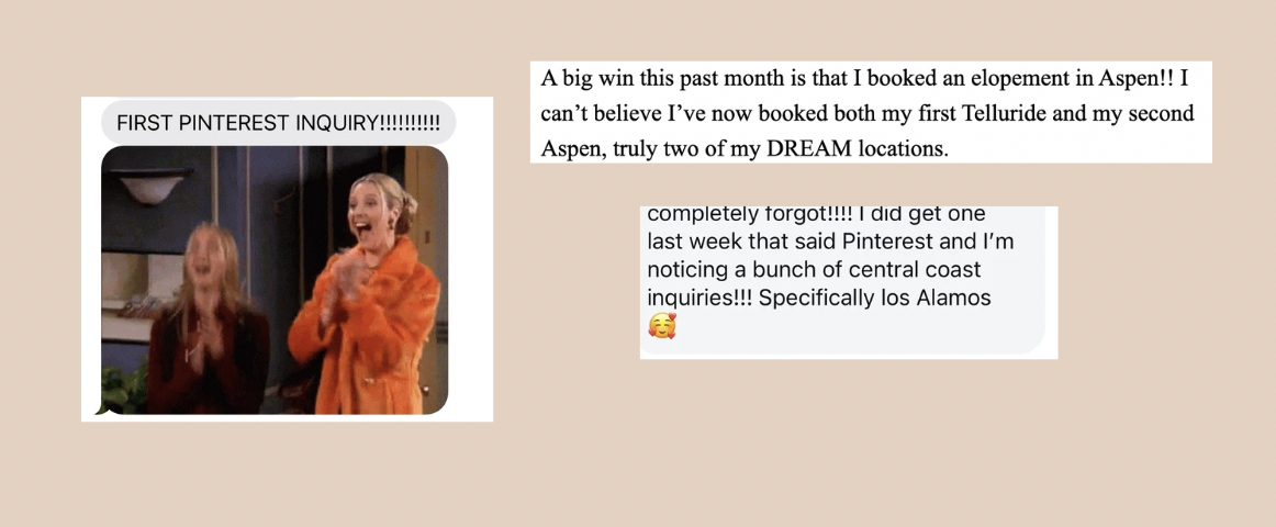 The right design isn’t just about looks—it’s about attracting and engaging your ideal audience. When your pins resonate, they lead to more clicks, more website visits, and ultimately more inquiries and bookings. This is how you build long-term, sustainable growth.