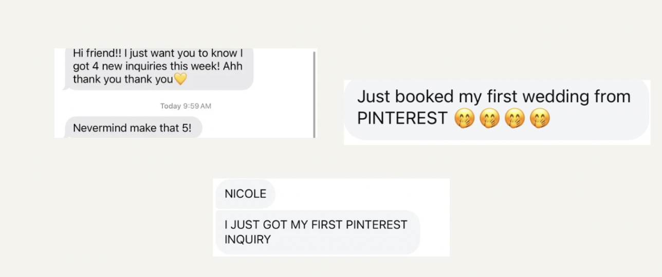 When you know what your dream clients are searching for, you can create content that speaks directly to their needs, meaning your pins show up in search results and get seen by the right people at the right time. More visibility equals more leads and bookings.